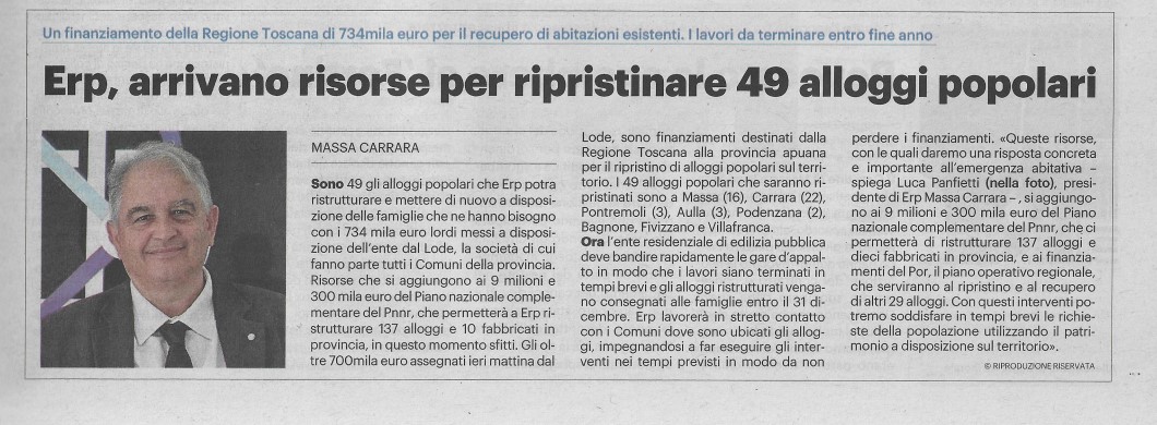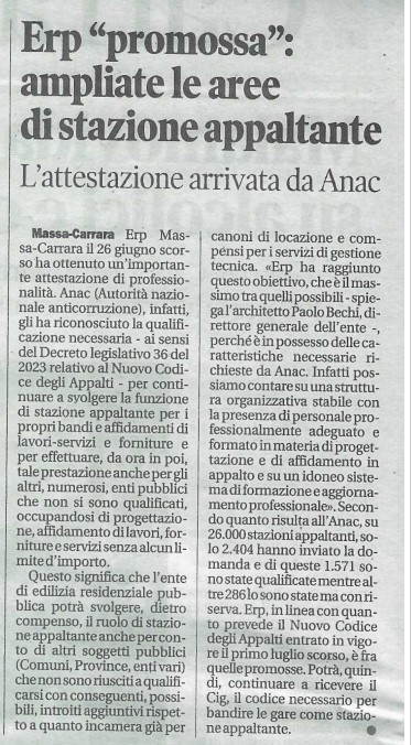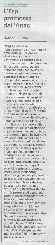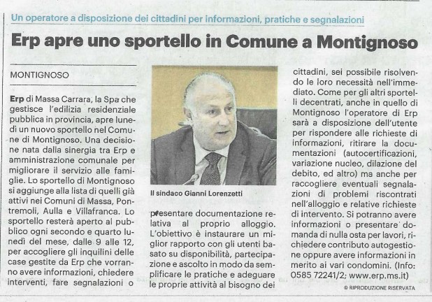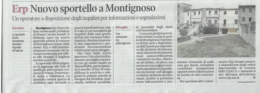 "Erp, un nuovo sportello per il pubblico in centro" - Massa (561.86 kB) Pubblicato il 20-01-2015